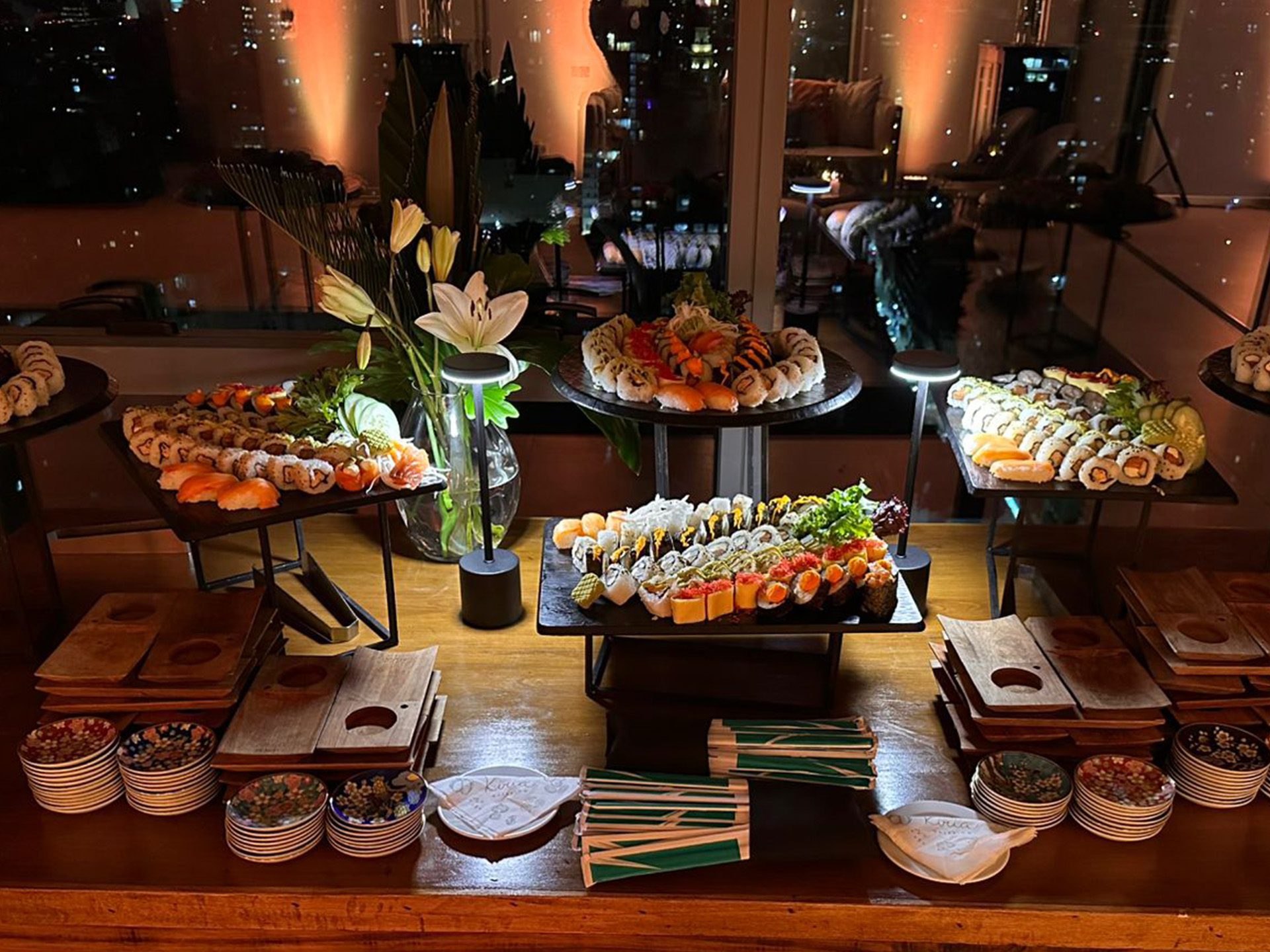 Se acompañó el evento con variedad de islas (Sushi, de la Campiña y la futura nueva isla DELI de Kiria). Además hubo bandejeo de bocaditos frios y calientes.